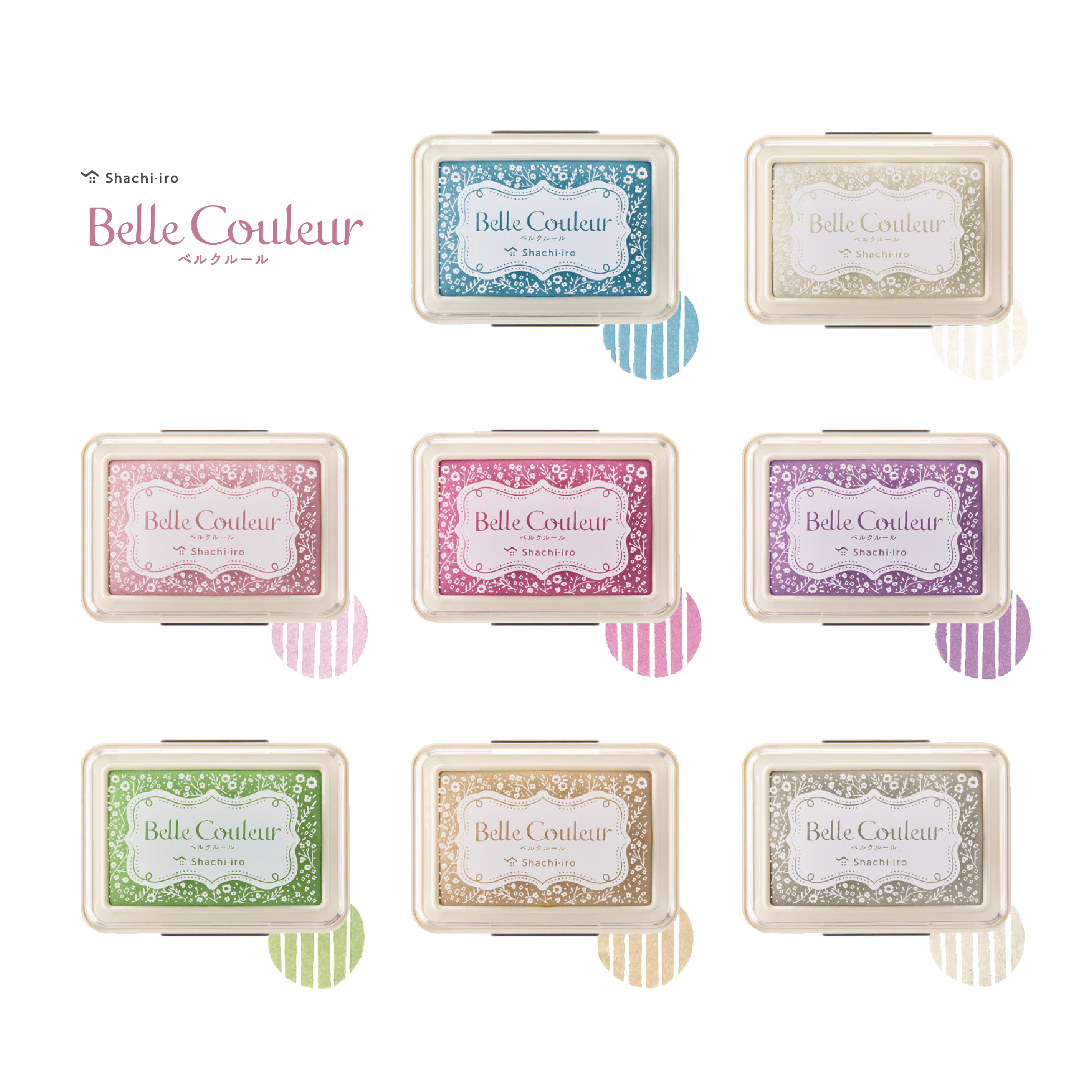「Belle Couleur」是一款帶有煙霧感的淺色油性印台,不僅可以在白色紙張上使用,也能在黑色或深色紙張上印得非常清晰。其名稱源自法語中的「美麗」(Belle)和「色彩」(Couleur)。可以在各種顏色的紙張上印刷,它讓創作的範圍更加廣闊。
