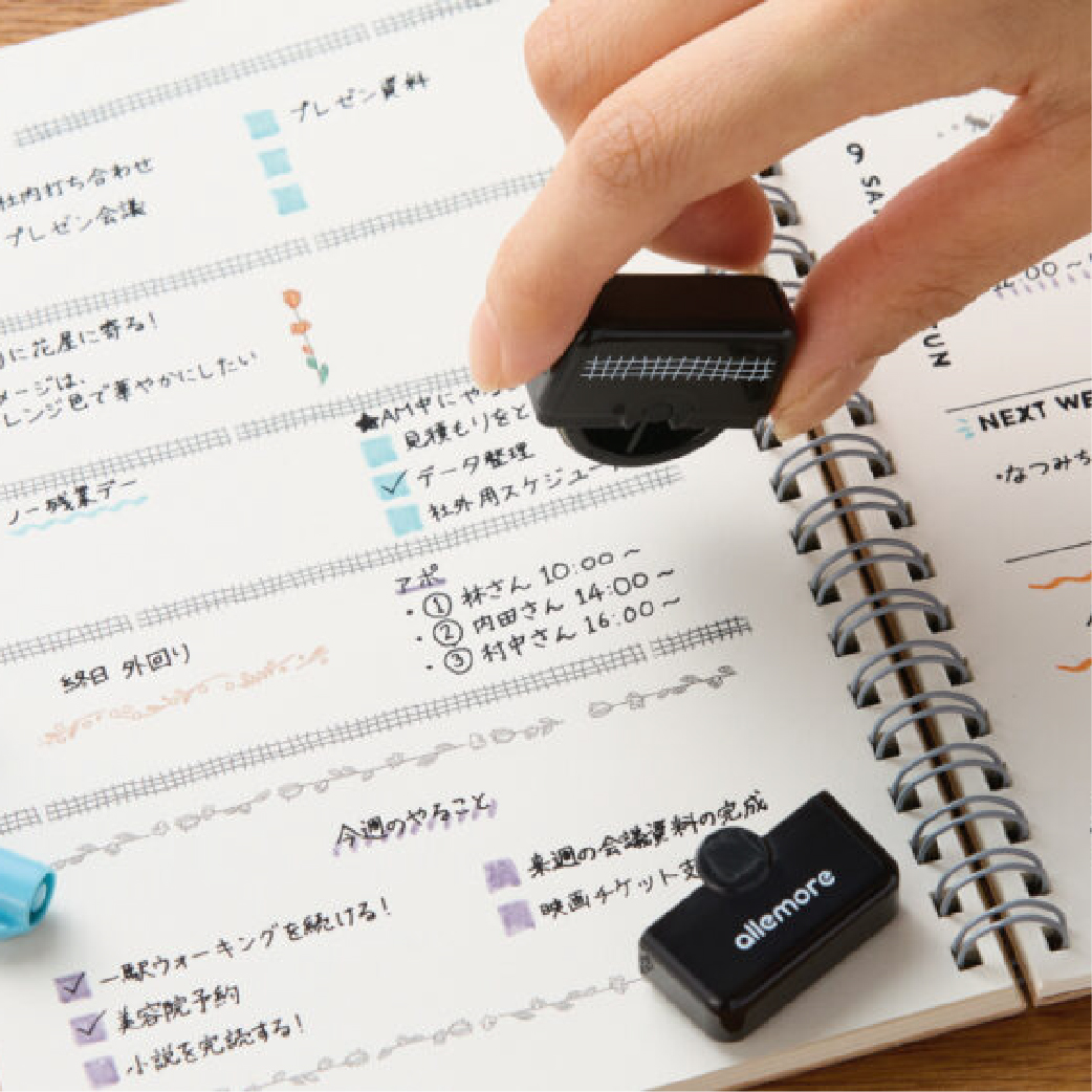 只需滾動即可輕鬆裝飾的“滾輪印章”如果用它為簡單的筆記本或記事本添加邊框或線條,會比手寫更簡單、更美觀。